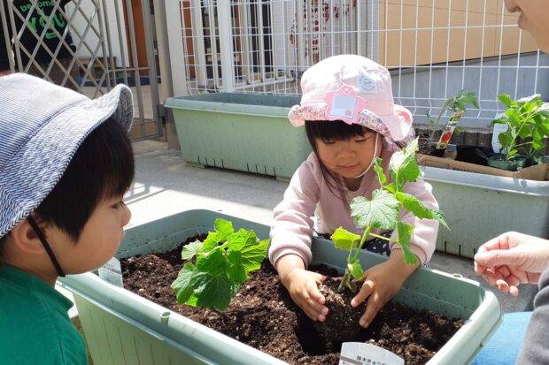 朝の会で苗植えのお話をすると、とっても興味津々な顔で聞く子どもたち。