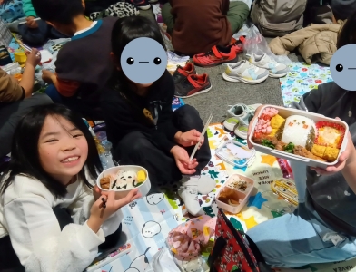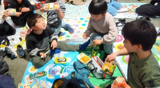 お昼ご飯の時間には、ご家庭で準備していただいた愛情たっぷりのお弁当を「見て見て!」と嬉しそうに見せ合いながら、美味しそうに頬張る姿が印象的でした。