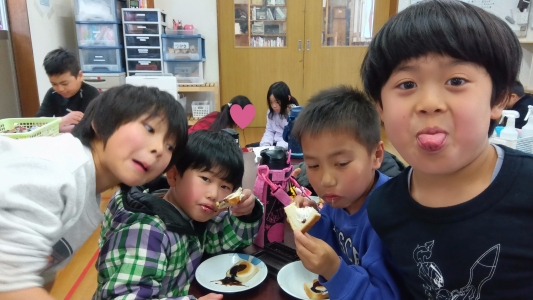 中には何も乗せずにそのまま食べて「おいしー!」と言っている子もいました!