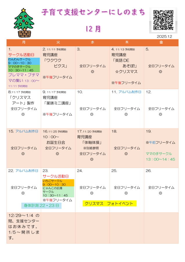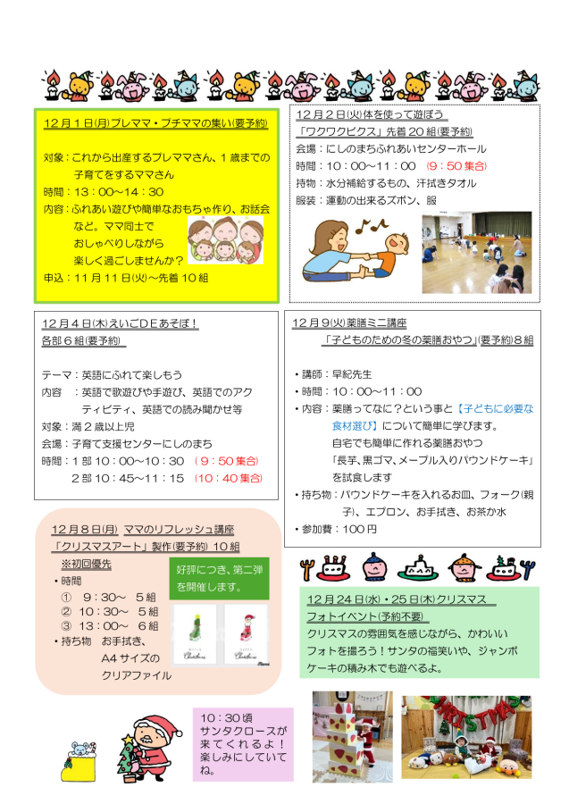 12月の「クリスマスフォトイベント」は、サンタクロースが遊びに来ますよ。是非みなさん、遊びに来て下さいね。