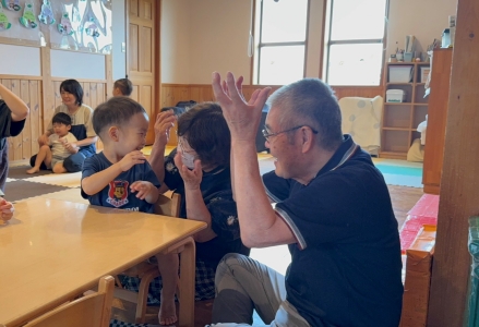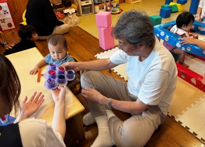 「みてみて~」「こっちだよ」「いっしょにあそぼ~」とおじいちゃん、おばあちゃんを誘いながら、一緒に遊んでいる姿はとっても微笑ましかったです♪