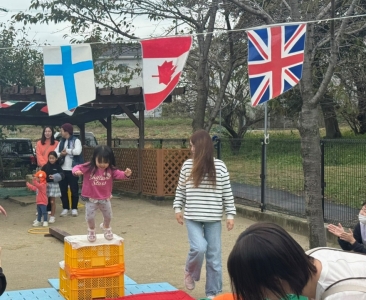 身体を動かすことが大好きなうさぎ組さん。毎日の遊びの中で、平均台やジャンプなどのサーキット遊びを楽しんできました。当日は、お母さんやお父さんたちに見守られながら、ひとりでジャンプに挑戦してみたり、一緒に虫探しをしたりして楽しんでいましたよ♪