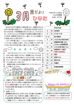 早いものでもう3月。今年度も残りわずかとなりました。子どもたちの大きくたくましく…