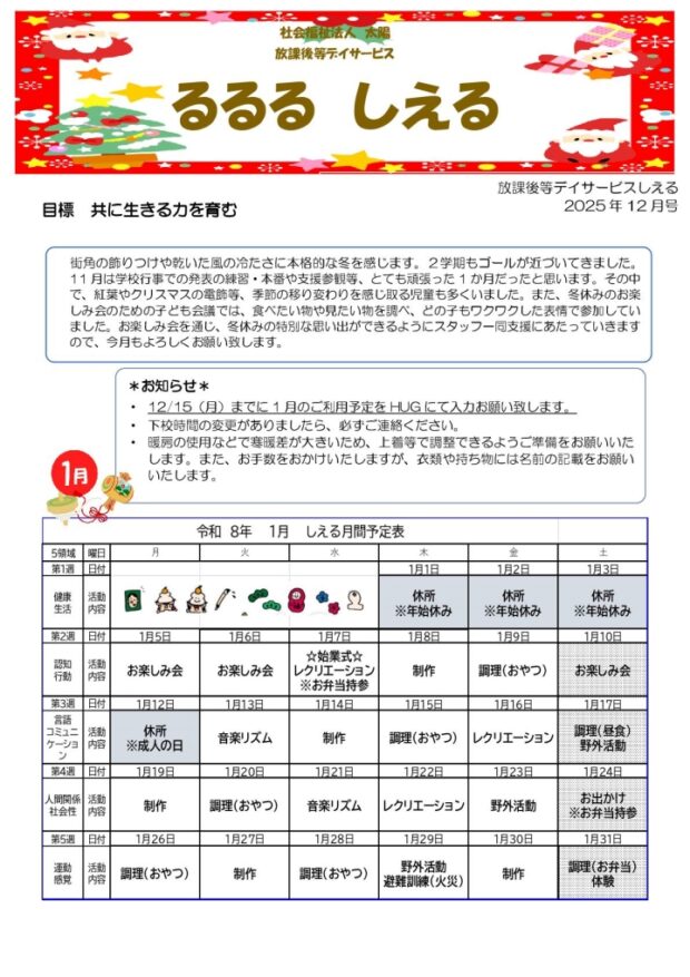 しえるでは子どもたちの体調を第一に考え、引き続きインフルエンザ・感染症の予防対策を徹底して参ります。