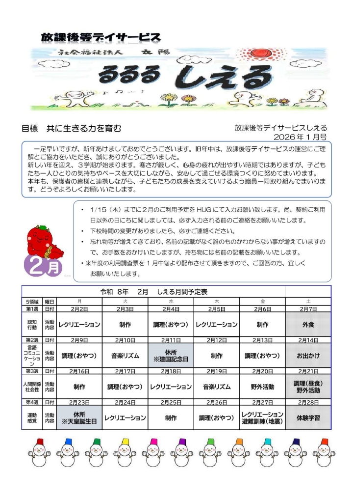しえる おたより 放デイ2026.1