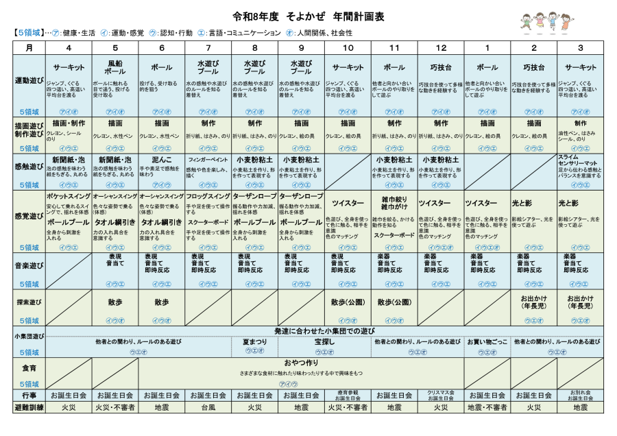 令和6年度障害福祉サービス等報酬改定に併せて、支援の質の向上の観点から、「児童発達支援・放課後等デイサービスにおいて、適切なアセスメントの実施とこどもの特性を踏まえた支援を確保する観点から、支援において、5領域(「健康・生活」「運動・感覚」「認知・行動」「言語・コミュニ ケーション」「人間関係・社会性」)を全て含めた総合的な支援を提供することを基本とすることが明示されました。