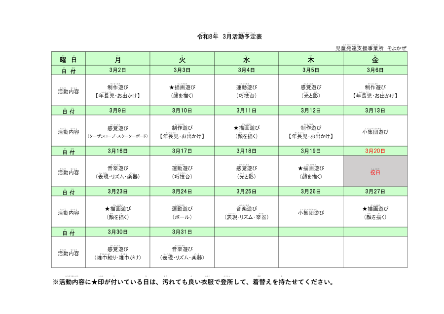 3月の活動予定